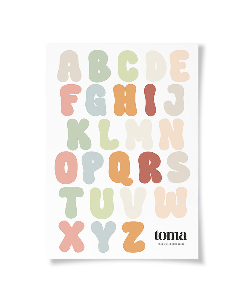 כל סט כולל 52 מדבקות נפרדות של אותיות גדולות בעיצוב מקורי של Toma.