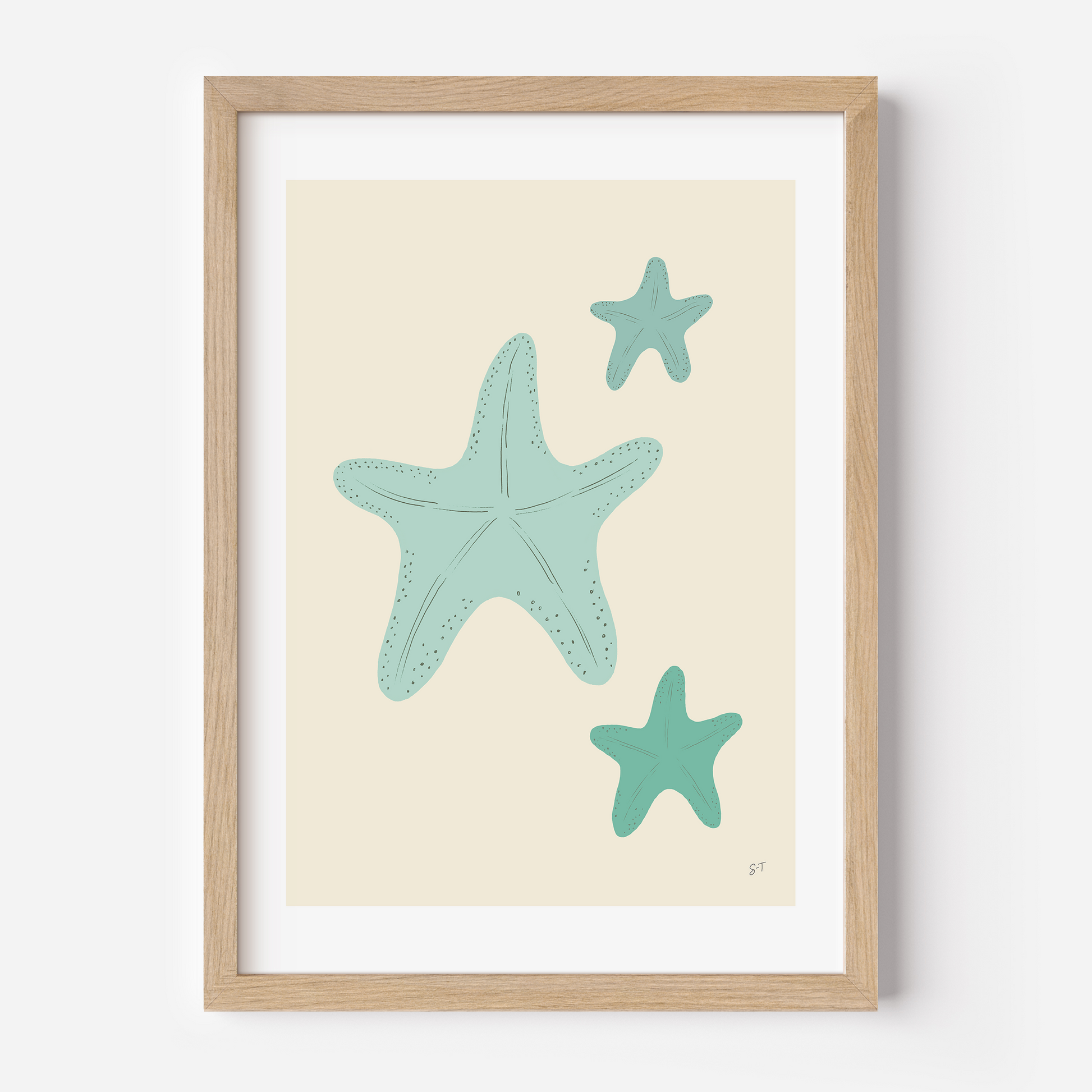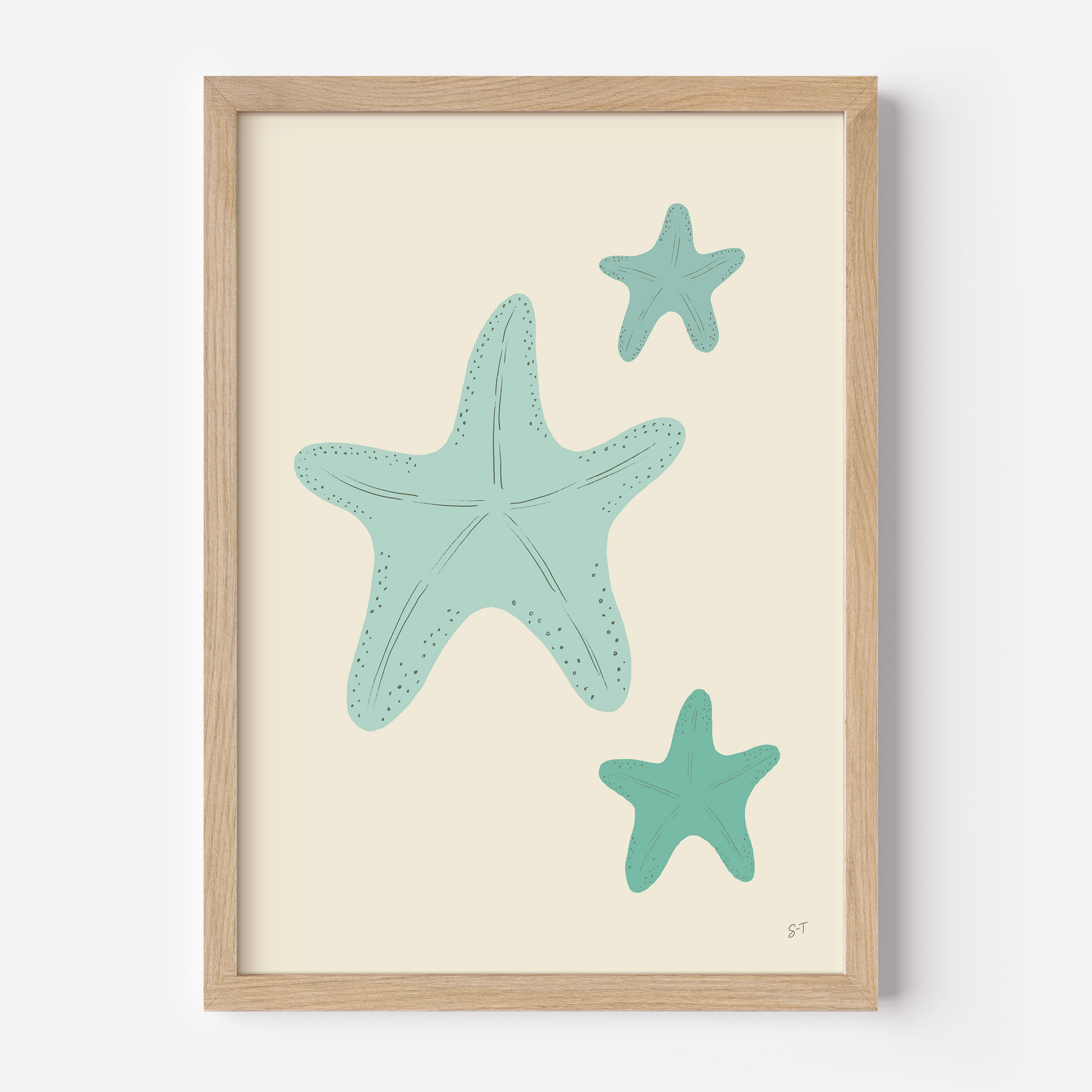 איור מקורי מתוך קולקציית הילדים השואבת השראה מהפשטות והיופי שבטבע. הקולקציה עוסקת בצבעוניות וקו אשר שואפים להרמוניה ופישוט של הצורניות הטבעית. באיור מוצגים כוכבי ים עדינים.
