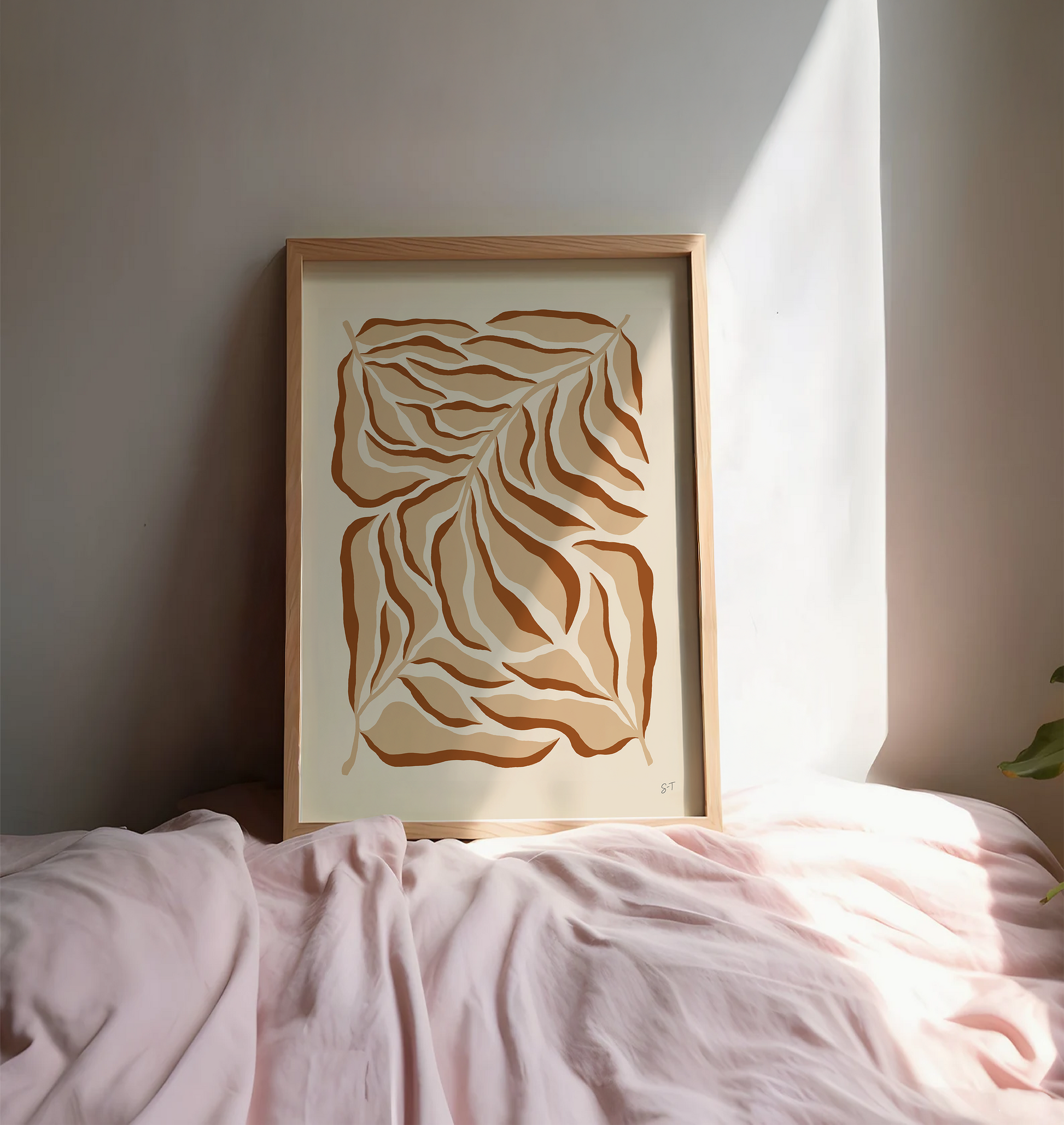 מסגרת עץ טבעי / שחור / לבן: עובי פרופיל 2 - 1.5 ס״מ בהתאם לגודל התמונה, עומק 3 ס״מ.